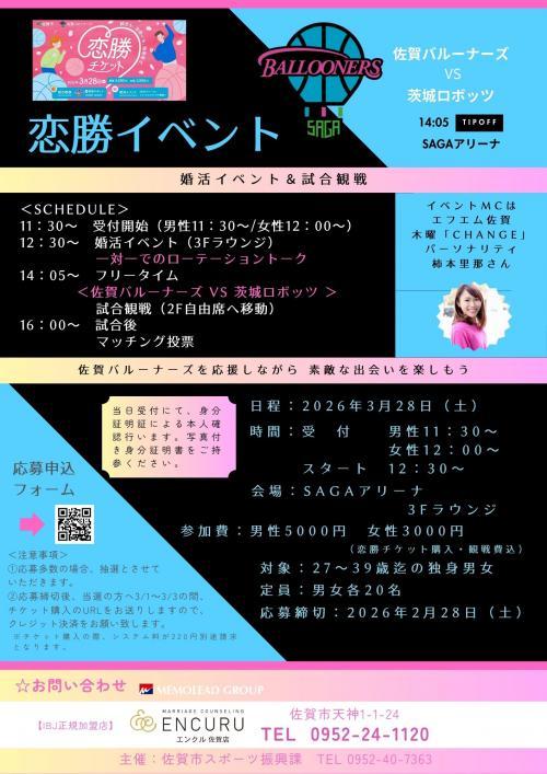 恋勝イベント【佐賀市スポーツ振興課主催】※ENCURU佐賀店&佐賀バルーナーズ合同開催【主催:(株)メモリード エンクル佐賀店】