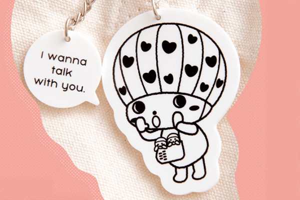 パパ・ママ世代の「話したい」「話かけられたい」という、なかなか言葉にしにくい気持ちを身につけるだけであらわすことができる意思表示チャームを配布。